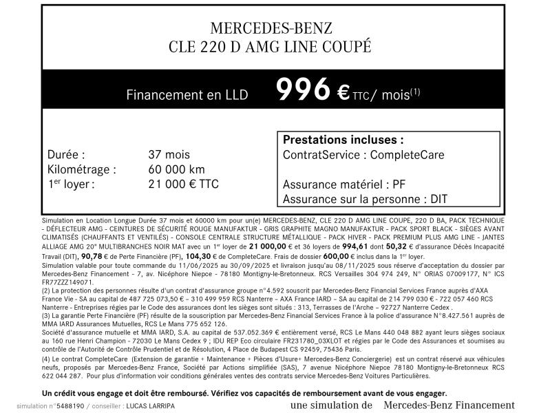 CLE Coupé 220 d 197ch AMG Line 9G-Tronic